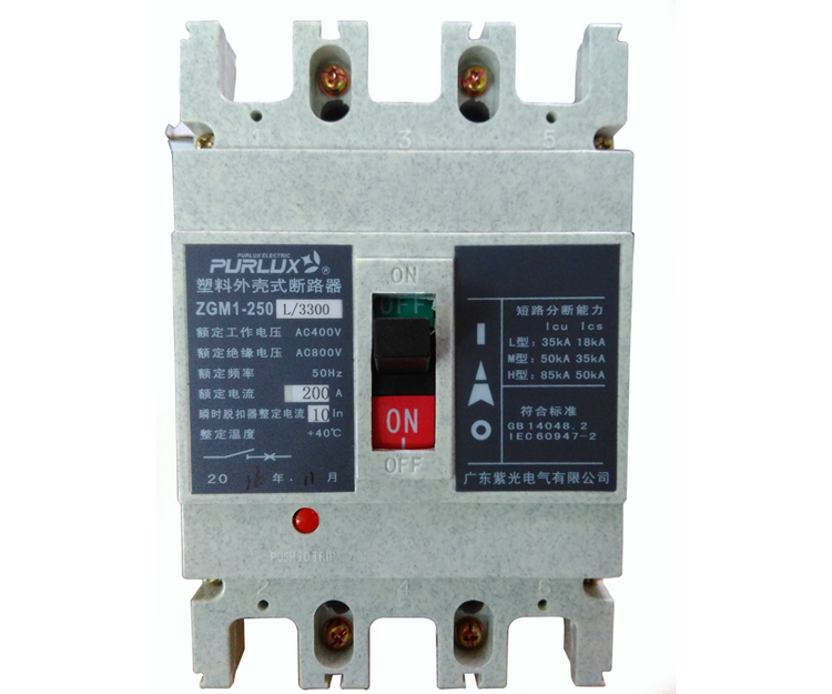 ZGM1塑壳断路器适用于50HZ,400v以下三相交流配电系统中,作为低压开关柜支路主开关,是紫光电气GGD、GCK等低压开关柜常规品牌。